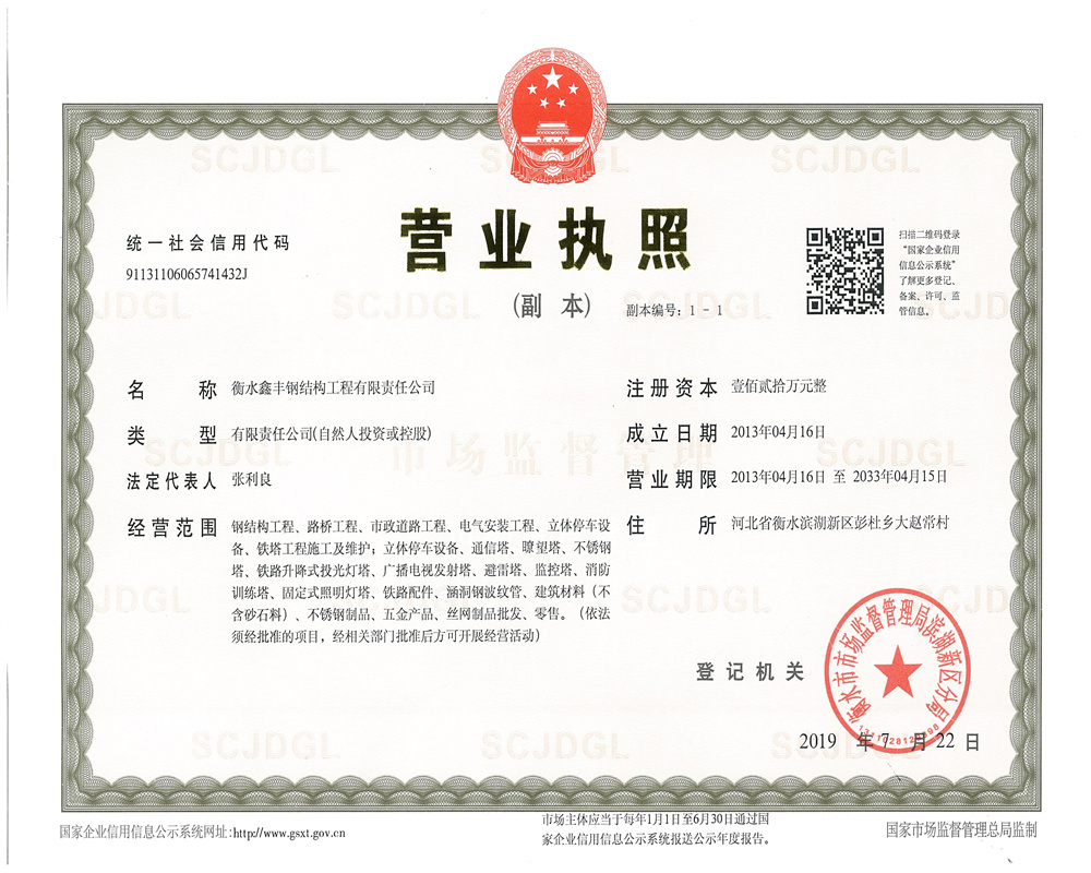 衡水鑫豐鋼結(jié)構(gòu)工程有限責(zé)任公司建于 2003年, 技術(shù)力量雄厚 , 專(zhuān)注生產(chǎn)鋼結(jié)構(gòu)鐵塔系列產(chǎn)品 。本廠(chǎng)具有鋼、鋁塔設(shè)計(jì),制作以及鑄造、鉚焊、鍛壓、熱鍍鋅、防腐等綜合制作能力,在設(shè)計(jì)、制作、安裝以及專(zhuān)用設(shè)備方面有豐富的經(jīng)驗(yàn)。